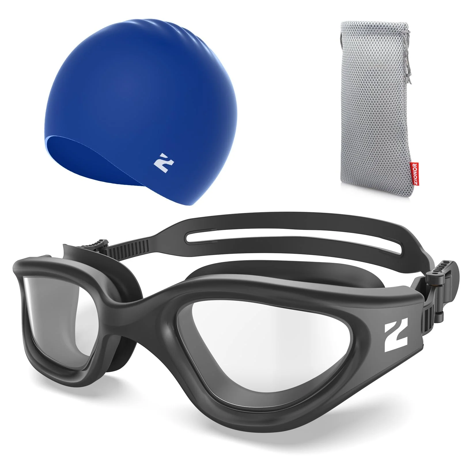 ZIONOR G1 Lite Clear Lens Swim Goggles with Swim Cap Comfortable Anti-fog for Adult Men Women